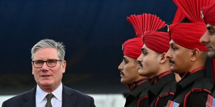 Britain's Prime Minister Keir Starmer is on his first official trip to India, accompanied by a 125-member delegation that includes top business leaders. ©AFP