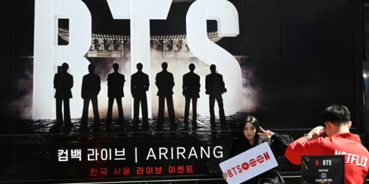 “They are looking towards the future but reminding the fans and themselves of their history,” she said. Four of the BTS members spent their military service stationed near the heavily fortified inter-Korean border, known for barbed wire, harsh winters, and intense training. One slept in a self-propelled artillery vehicle. “Just like many people who had to put their lives on hold or adapt to difficult circumstances, BTS completed a duty that separated them for a while,” Loukia Kyratzoglou, a fan from Greece, told AFP. “But they are coming back stronger and ready to continue their journey.”