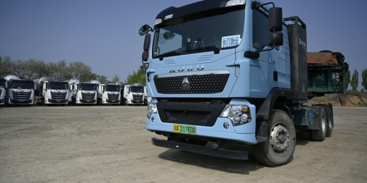 Beijing (AFP) – At a dusty lot an hour outside Beijing, a steady stream of vehicles come and go for a quick battery charge — just one node in China’s rapidly expanding network of electric trucks. While the country’s prowess in electric passenger vehicles has long been known globally, electric trucks have only recently gained traction. Now powered by extensive charging and battery-swapping infrastructure, the cost structures clearly favour electric models, experts say, in a potentially fatal blow for conventional diesel rigs.