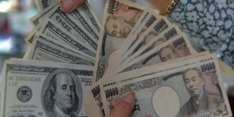 Hong Kong (AFP) – The dollar fell in Asian trade Monday amid speculation US officials could join their Japanese counterparts to help support the yen after a recent sell-off, while equities started the week on a tepid note. Reports that the Federal Reserve Bank of New York had checked in with traders about the yen’s exchange rate sparked a surge in the Japanese currency, according to Bloomberg, pushing it up more than one percent to 153.89 per dollar — its strongest level since November.