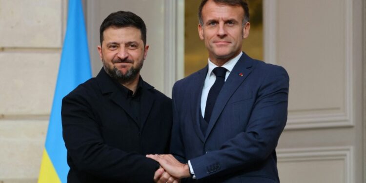 Paris (AFP) – France’s President Emmanuel Macron and his Ukrainian counterpart Volodymyr Zelensky on Monday signed an accord for Kyiv to acquire up to 100 fighter jets and other hardware, including drones, in a boost for Ukraine as it fights Russia’s invasion. Delivery of the Rafale fighter jets — the crown jewel of French combat aviation — is only foreseen under the letter of intent over a 10-year horizon, although the production of drones and interceptors would start by the end of this year, Macron said.