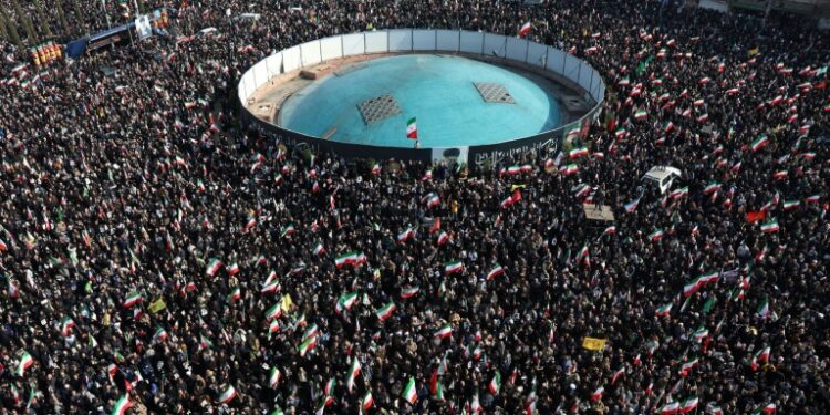 Demonstrators gather for a rally in support of Iran's new supreme leader in central Tehran on Monday. ©AFP