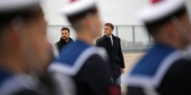 Vélizy-Villacoublay (France) (AFP) – France’s President Emmanuel Macron and Ukrainian counterpart Volodymyr Zelensky on Monday signed an accord for Kyiv to acquire up to 100 Rafale fighter jets and other hardware, a boost for Ukraine as it fights the Russian invasion. The letter of intent inked by the two leaders sets out possible future contracts for Ukraine to acquire 100 Rafale fighter jets “with their associated weapons,” according to the French presidency. It also lays out deals for the new generation SAMP-T air defense systems, which are under development, along with radar systems and drones.