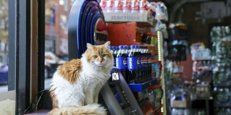 New York (AFP) – Simba, a large cat with thick ginger and white fur, is one of thousands of felines that live in New York’s corner shops known as “bodegas” — even if their presence is illegal. Praised for warding off pests, so-called bodega cats are also a cultural fixture for New Yorkers, some of whom are now pushing to enshrine legal rights for the little store helpers.
