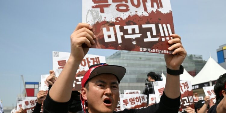 Pyeongtaek (South Korea) (AFP) – Tens of thousands of Samsung Electronics workers rallied in South Korea on Thursday to demand higher pay and bonuses, as their threat of a weeks-long strike hung over the technology giant. Samsung is a major producer of chips used in everything from artificial intelligence to consumer electronics, raising the prospect that the planned walkout could cause severe disruption and losses.