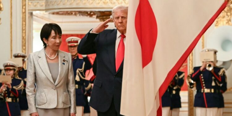 Tokyo (AFP) – Japan’s new premier Sanae Takaichi lavished US leader Donald Trump with praise and vows of a “golden age” of ties on his visit to Tokyo Tuesday, before inking a deal with Washington aimed at securing critical minerals. Takaichi — Japan’s first woman prime minister — pulled out all the stops for Trump in her opening test on the international stage, and even announced she would nominate him for a Nobel Peace Prize, the White House said.
