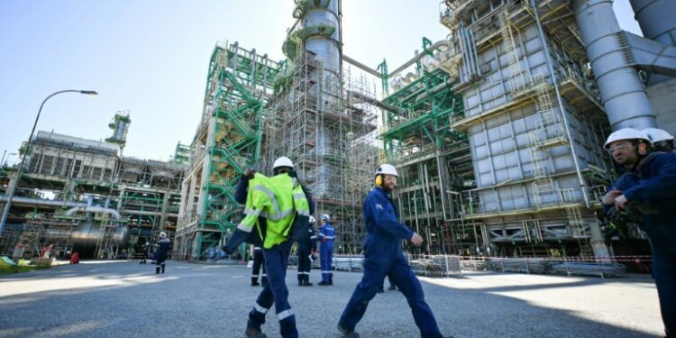 Gonfreville-l’Orcher (France) (AFP) – A maze of over 40,000 kilometres (25,000 miles) of pipes located at the mouth of the Seine where it spills into the Channel, the TotalEnergies refinery is working full throttle to keep planes flying and trucks running. Halfway up a 40-metre-high metal tower, the head of the refinery’s technical division, Elise Thomazo, stops to explain the workings of the facility over the continuous hum of the machinery. “We’re on the hydrocracking unit, a conversion unit that will allow us to maximize the production of diesel and kerosene for road and aviation fuels,” she told AFP.