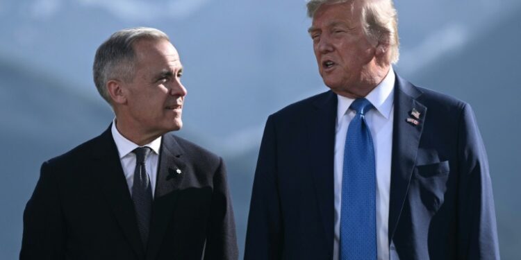 The latest twist in relations between the United States and Canada came just over two weeks after Carney visited Trump at the White House to seek a relaxation of stiff US tariffs. At that meeting, Trump described Carney as a “world-class leader” and said the Canadian would “walk away very happy” from their discussion. Trump’s global sectoral tariffs — particularly on steel, aluminum, and autos — have hit Canada hard, forcing job losses and squeezing businesses. For now, the United States and Canada adhere to an existing North American trade deal called the USMCA, which ensures that roughly 85 percent of cross-border trade in both directions remains tariff-free.