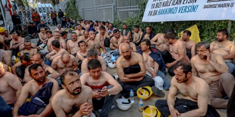 Istanbul (AFP) – One hundred and ten Turkish coal miners who had marched 200 kilometres (125 miles) to stage a hunger strike for their unpaid wages were arrested on Tuesday morning, their union said. After a nine-day march to Ankara from the neighbouring province of Ekisehir, the miners arrived on Monday for a topless sit-in outside the country’s energy ministry building in the Turkish capital, before being surrounded by the police.