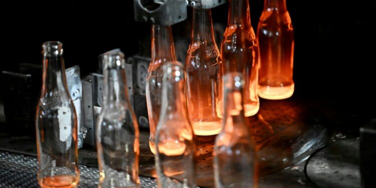 Elton (United Kingdom) (AFP) – Molten glass drops through chutes before being blown into bottles at manufacturer Encirc’s northwest England plant, where intensive operations are under strain from exorbitant energy prices weighing on Britain’s heavy industry. “We’re paying a lot more energy costs than our European competitors,” said Oliver Harry, head of corporate affairs at Encirc, which makes over a third of the UK’s glass bottles.