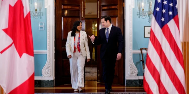 Secretary of State Marco Rubio and Canadian Foreign Minister Anita Anand in Washington in August. ©AFP