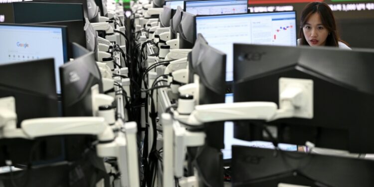 In Europe, London and Frankfurt were in the red in afternoon deals but Paris rose after French Prime Minister Sebastien Lecornu survived two no-confidence votes the previous day. Deutsche Bank shares slumped 4.6 percent, while French bank Societe Generale shed 3.9 percent and Britain’s Barclays dropped around four percent.