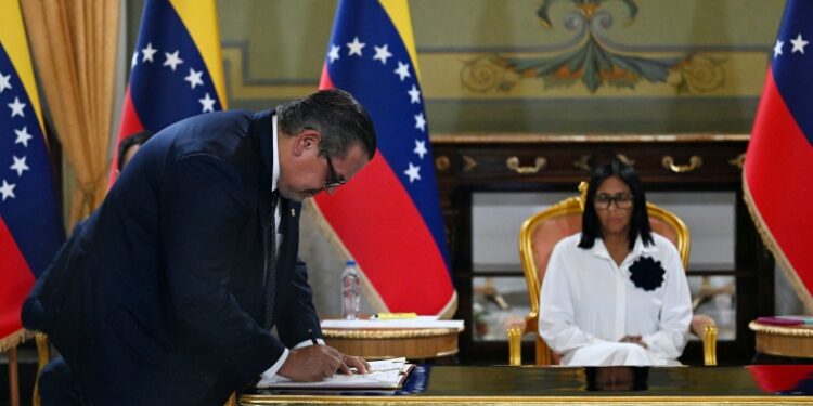 Caracas (AFP) – US oil giant Chevron and the government of Venezuela signed two deals Monday that will expand oil production in the country, as the country seeks to boost private investment in the sector. A signing ceremony took place at Miraflores Palace, where interim president Delcy Rodriguez was joined by Chevron Venezuela president Mariano Vela and a number of US dignitaries, including Charge D’affaires Laura Farnsworth Dogu and Assistant Secretary of Energy Kyle Haustveit.