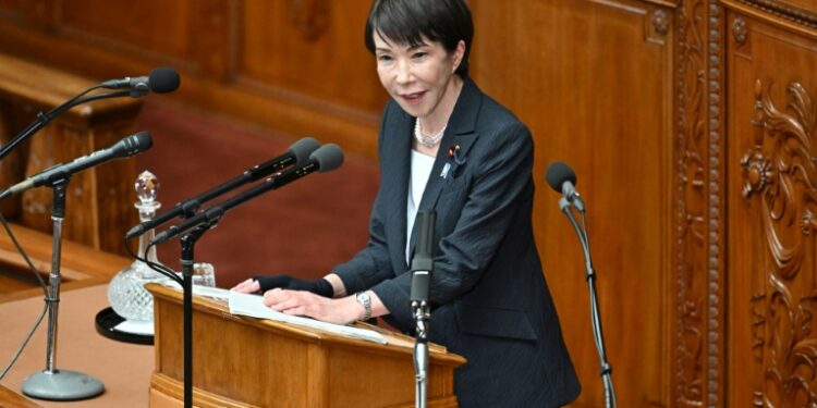 Tokyo (AFP) – Prime Minister Sanae Takaichi pledged Friday to make Japan “strong and prosperous,” while hitting out at China and pledging to keep “hitting the growth button” following her party’s landslide election win.